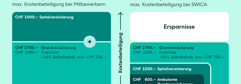 SWICA rechnet als einzige Krankenversicherung die Kostenbeteiligung ihrer Grundversicherung an die der SWICA-Zusatzversicherungen an, wodurch die maximale jährliche Kostenbeteiligung im Vergleich zu anderen Krankenversicherern grundsätzlich tiefer liegt.