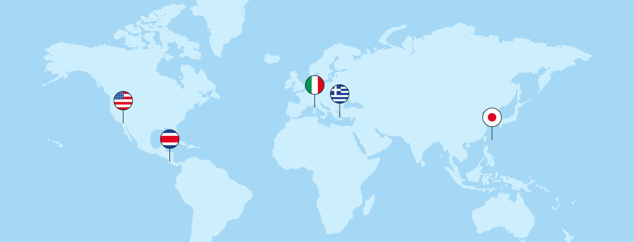 Loma Linda, Nicoya, Sardinien, Ikaria und Okinawa: An diesen Orten werden Menschen überdurchschnittlich alt und leiden seltener an Demenz oder Herz-Kreislauf-Erkrankungen. Ernährung, Lebensstil und soziale Strukturen scheinen einen grossen Einfluss zu haben.* Das können auch Menschen ausserhalb der Blue Zones in ihren Alltag integrieren.