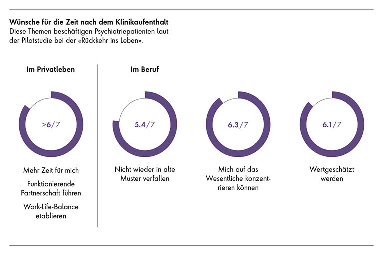 Nach einem Burnout, einer Depression oder anderen schweren psychiatrischen Erkrankungen mit mehrwöchigem Klinikaufenthalt gestaltet sich die «Rückkehr ins Leben» besonders herausfordernd. Psychosoziale Probleme erschweren die Wiedereingliederung in den Familien- und Berufsalltag. Die Betroffenen bleiben mit nichtmedizinischen Fragen rund um die Arbeitsfähigkeit und Vermittelbarkeit oft auf sich allein gestellt.