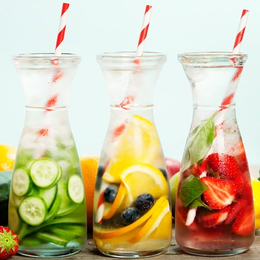 Vor allem Zitrusfrüchte und Gurkenscheiben verleihen dem Wasser schnell einen abwechlungsreichen Geschmack. Auch Früchte wie Wassermelonen, Pfirsiche, Kiwis und Beeren aller Art eignen sich ideal für ein erfrischendes Getränk. Wieso nicht gleich verschiedene Früchte mischen?