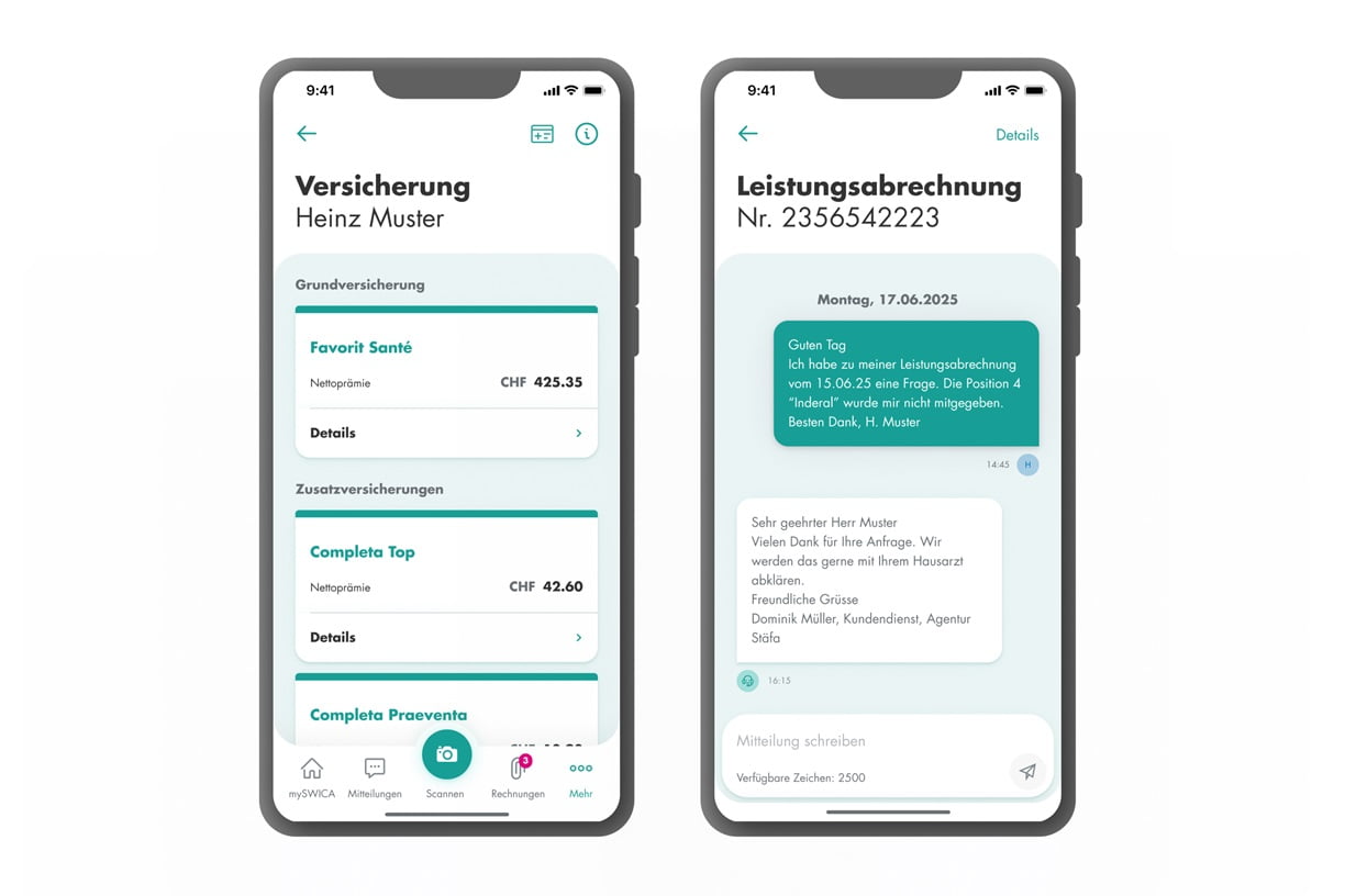 Das mySWICA-Kundenportal fasst alle wichtigen Informationen rund um Ihre Krankenversicherung digital zusammen und ist sowohl als App auf dem Handy wie auch über den Computer nutzbar. Sie können jederzeit darauf zugreifen und Informationen zur aktuellsten Leistungs- oder Prämienabrechnung abfragen, Rechnungen einreichen, den Restbetrag der Franchise einsehen oder mit dem SWICA Kundenservice in Kontakt treten.
