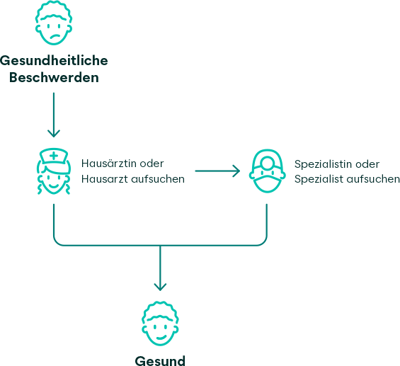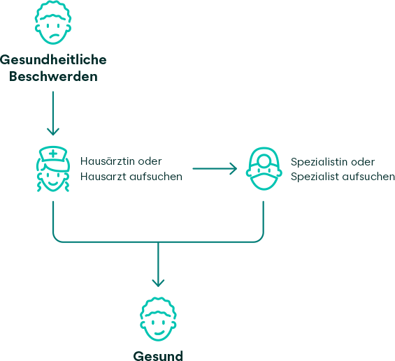 - Bei jedem auftretenden Gesundheitsproblem wenden Sie sich an Ihre Hausärztin oder Ihren Hausarzt. Mit Ihrer Hausärztin oder Ihrem Hausarzt besprechen Sie das optimale Vorgehen, die Auswahl von allfällig nötigen Spezialistinnen und Spezialisten sowie geeigneten Spitälern oder weitere Therapiemassnahmen.