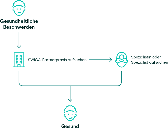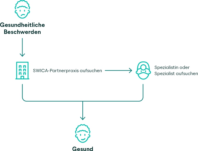 Mit dem HMO-Modell Favorit Santé wenden Sie sich bei jedem auftretenden Gesundheitsproblem an Ihre SWICA-Partnerpraxis.