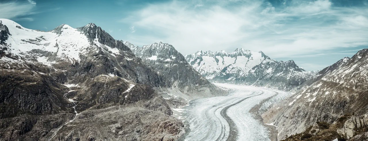 Glaciers are in retreat. Researchers predict that up to 85% of the 1,400 glaciers currently found in Switzerland will disappear by 2100 – and that is under the most positive climate scenario. The ice is melting at an alarming pace that has accelerated significantly since the dawn of the industrial age. Since the 1990s it has been shrinking at a disastrous speed. The Aletsch Glacier alone – the largest in the Alps – has shrunk by over a kilometre in the last 30 years or so.