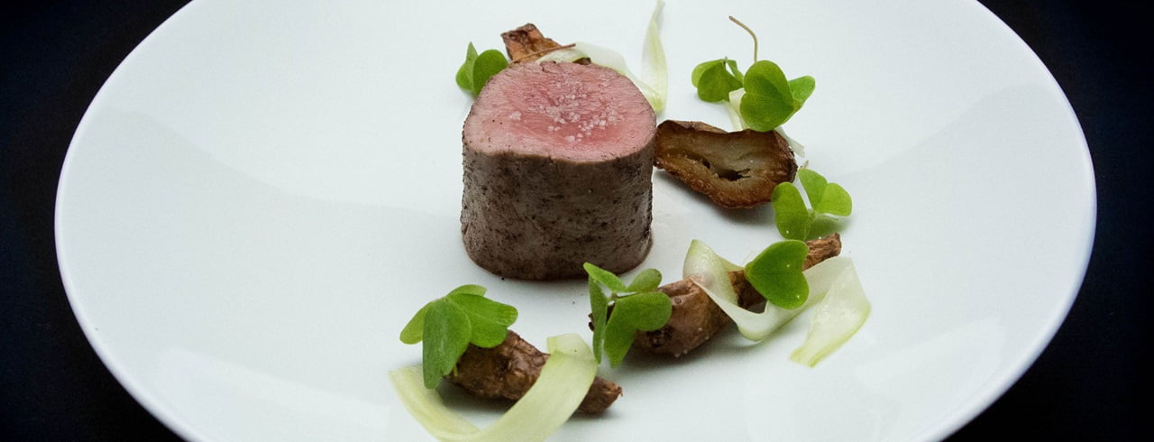 Prepare and then vacuum the veal fillet. Simmer the veal fillet “sous-vide” in the bag in water at 60 °C for 25 minutes. After 25 minutes, take the fillet out of the bag and season it with salt and pepper. Fry it briefly on both sides in sunflower oil. Once both sides of the fillet are nicely brown, add the butter, herbs and garlic clove. Remove the frying pan from the stove.