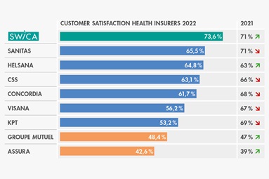 SWICA has once again received a high rating in the comparison of health insurers carried out by Comparis in 2022. SWICA's score of 5.1 was the highest out of all major Swiss health insurers.
