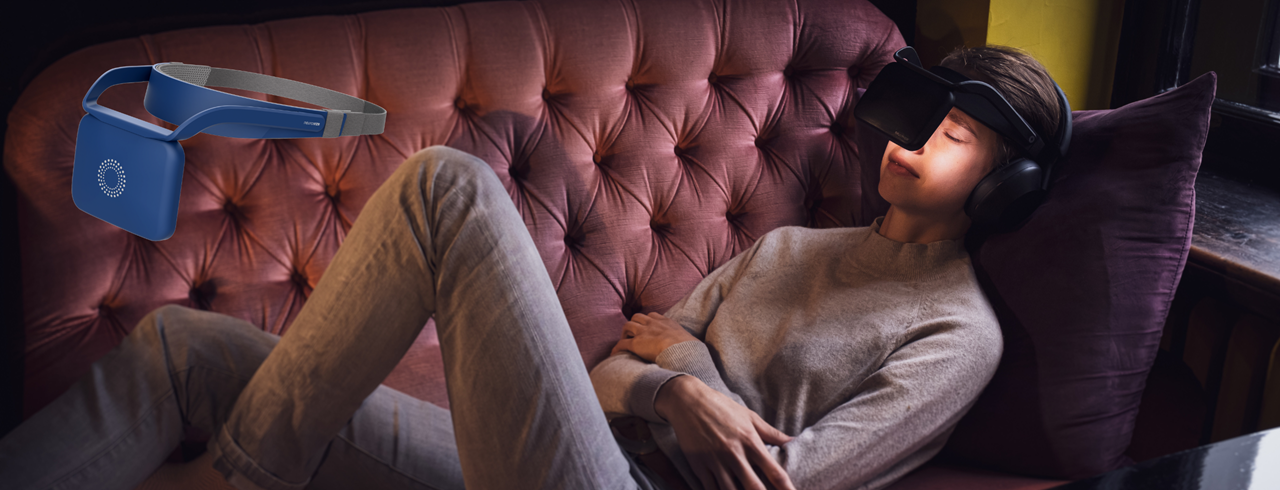 The technology combines light and sound stimulation to bring body and mind into a state of equilibrium. Just an 11-minute session helps to calm the mind, break out of thought loops and ease the transition to restful sleep or deep relaxation.