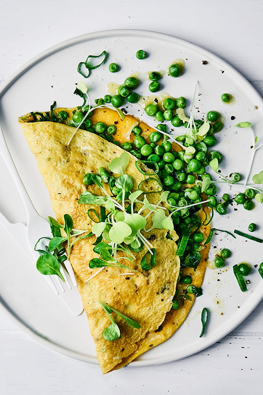 Omelette with peas and cheese – a high-protein dish in less than 25 minutes
