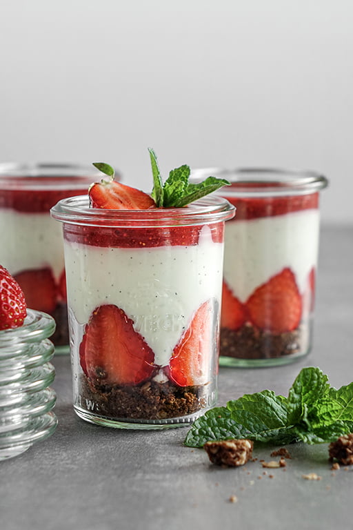 Here's a fruity finish to your light summer dinner with a protein-rich dessert. With its low sugar and fat content, the vanilla strawberry cup makes an ideal dessert for those who are watching their figure.