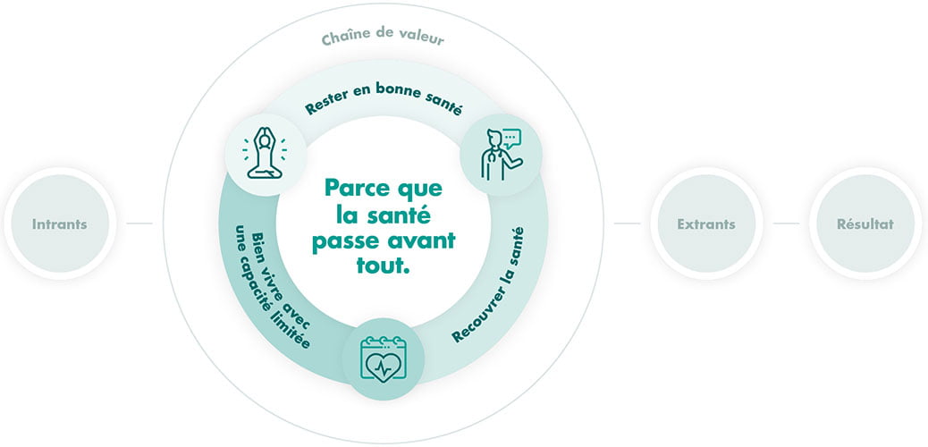 Nous aidons nos clientes et clients à rester en bonne santé le plus longtemps possible en les incitant à privilégier un mode de vie sain et en œuvrant activement à la prévention de maladies. Lorsqu’ils tombent malades, nous participons à l’élaboration de leur parcours de soin et encourageons la collaboration grâce à des partenariats étroits avec les fournisseurs de prestations. Il en résulte une prise en charge efficace et de qualité qui vise à réduire le risque de sur- ou sous-médicalisation et de soins inadaptés. Les personnes malades et leur entourage sont les premiers à en bénéficier, mais l’impact sur le système de santé, la société et l’environnement est également positif.