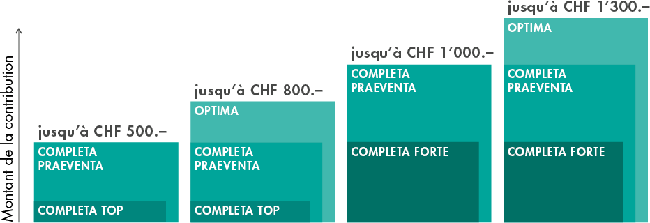 Completa Forte: 90% des coûts, mais au plus CHF 500.–, et 300.– au plus par genre de prévention