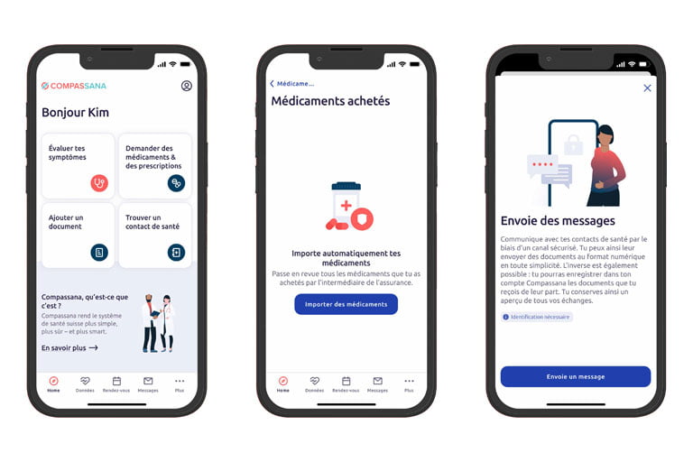 Compassana vous permet de gérer votre santé de manière simple et sûre, notamment la planification aisée des rendez-vous chez le ou la médecin, chez le ou la thérapeute, à la pharmacie ou à l’hôpital. De plus, les informations sur les médicaments et les données médicales vous concernant sont disponibles en tout temps de manière transparente et sécurisée.