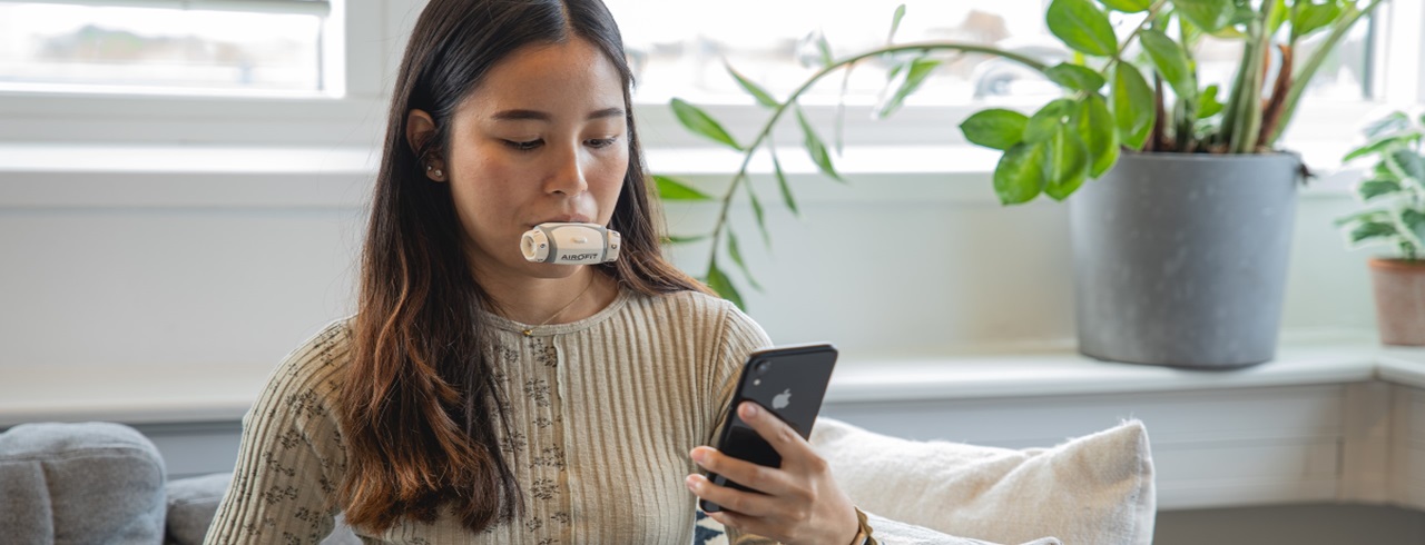 L’entreprise danoise Airofit s’est donné pour mission d’aider les personnes à améliorer leur respiration. Grâce à une application gratuite pour smartphone, Airofit offre de nombreuses fonctions ainsi que des entraînements respiratoires virtuels tels que l’entraînement des muscles respiratoires.