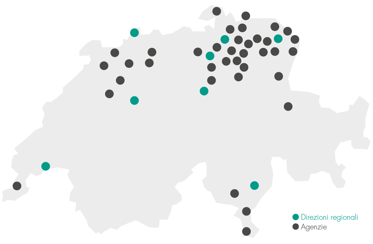 Con la sua struttura decentralizzata composta da cinque regioni e circa 50 sedi in tutta la Svizzera, SWICA è sempre vicina alla sua clientela. In questo modo potete beneficiare di una consulenza rapida e specifica in base alla vostra regione.