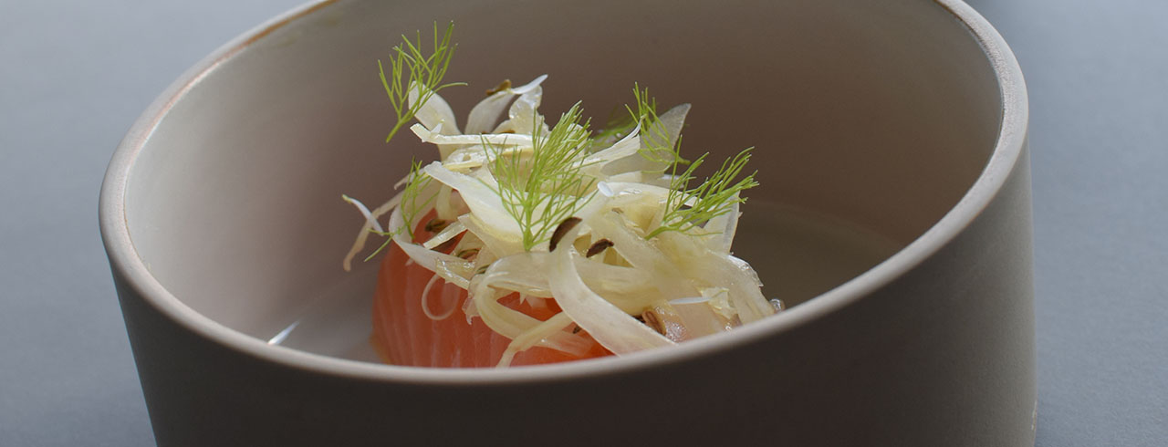 Impiattamento: distribuire l’insalata di finocchi sul salmone e decorare con l’aneto. Guarnire a piacere con qualcosa di croccante come semi di colza o grano saraceno fermentato. Aggiungere la salsa beurre blanc solo quando il piatto viene servito all’ospite.