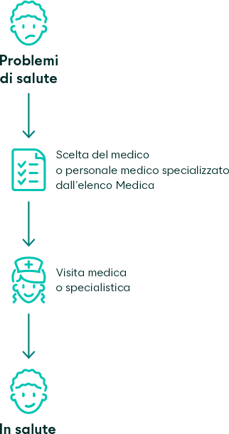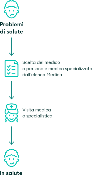 Con il modello elenco dei medici Favorit Medica potete scegliere liberamente il vostro medico in qualsiasi momento dall’ampio elenco Medica. Potete inoltre avvalervi dello studio medico online santé24 al numero di telefono +41 44 404 86 86.