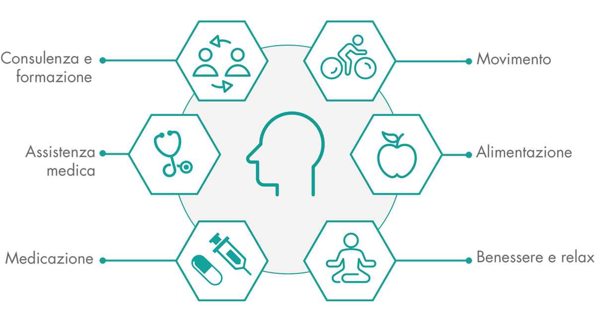I programmi di Disease Management comprendono oltre all’assistenza medica e personale un piano di assistenza basato sulle vostre esigenze. L’aspetto fondamentale di tali programmi è che la persona interessata assume un ruolo attivo all’interno del team di assistenza. Beneficiate di una consulenza globale in merito ai temi come l’alimentazione, il movimento e il benessere in generale.