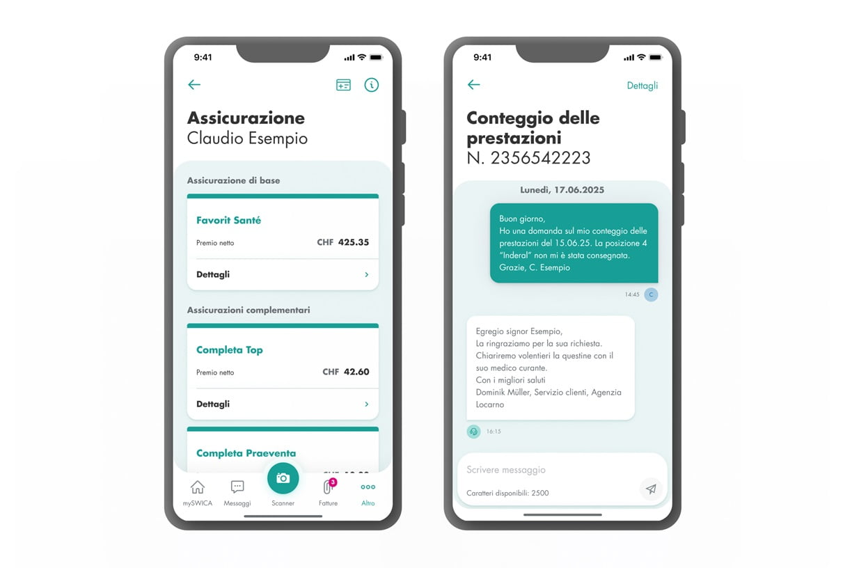 Il portale clienti mySWICA raggruppa, in formato digitale, tutte le informazioni importanti sulla vostra assicurazione malattia. È accessibile tramite un’app sul cellulare oppure dal computer. Potete accedervi in qualsiasi momento per consultare le informazioni aggiornate sul conteggio delle prestazioni o dei premi, inviare fatture, verificare l’importo restante della franchigia o mettervi in contatto con il servizio clienti SWICA.