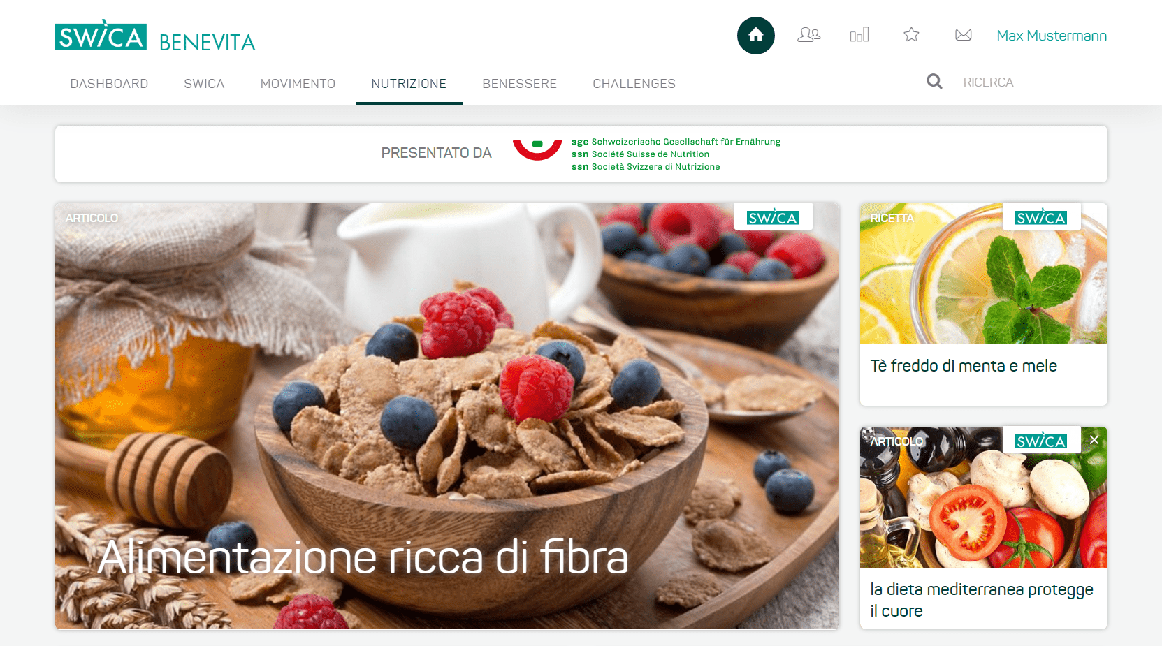 SWICA mette a disposizione di clienti e non clienti la piattaforma della salute Benevita. Questa piattaforma intende sostenere e motivare gli utenti a raggiungere i loro obiettivi sportivi e di salute. Per gli assicurati SWICA è integrato un programma di bonus che ricompensa il comportamento responsabile con un ribasso sui premi di assicurazioni complementari.