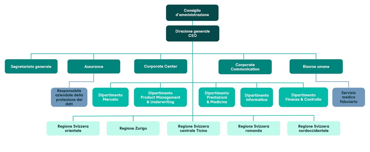 SWICA si distingue per una gestione aziendale sostenibile ed è tenuta a tutelare gli interessi delle persone assicurate. Chi stipula un’assicurazione con SWICA come persona privata diventa automaticamente membro dell’associazione SWICA Organizzazione sanitaria. Ogni tre anni, i membri dell’associazione eleggono i loro delegati, che si riuniscono annualmente nell’assemblea dei delegati. Il compito principale di quest’ultima è l’elezione dei membri del Comitato direttivo e quindi la nomina del Consiglio d’amministrazione di SWICA Holding AG. Il Consiglio d’amministrazione definisce la strategia del gruppo e vigila sul rispetto delle direttive finanziarie, nonché sulla corporate governance e sulla compliance.