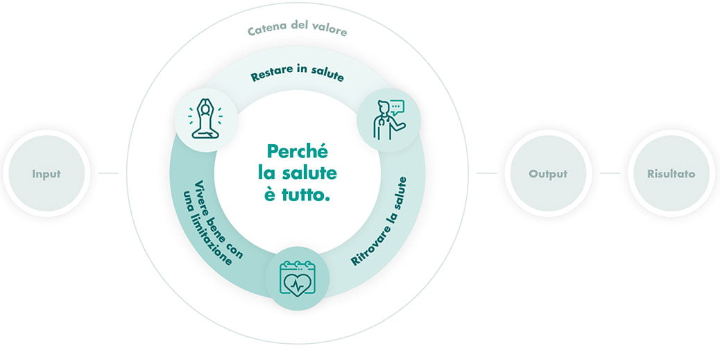 Sosteniamo la nostra clientela affinché rimanga in salute il più a lungo possibile, promuovendo uno stile di vita sano e svolgendo un ruolo attivo nella prevenzione delle malattie. In caso di malattia, aiutiamo le persone a definire il loro percorso di cura e incentiviamo la cooperazione attraverso stretti rapporti di partnership con i fornitori di prestazioni. Ne risulta un’assistenza medica efficiente e di alta qualità, nonché una riduzione dei casi di prestazioni sanitarie inopportune, eccessive o insufficienti. A beneficiarne sono soprattutto le persone interessate e i loro cari, ma anche il settore sanitario, la società e l’ambiente.